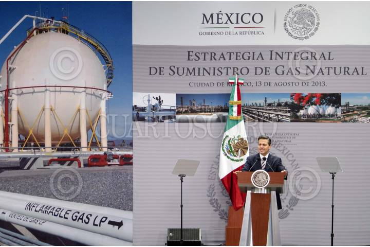 MÉXICO, D.F., 13AGOSTO2013.- Enrique Peña Nieto, presidente de México; encabezó la presentación de la Estratégia Integral de Suministro de Gas Natural. El presidente fue acompañado por el secretario de Energía Pedro Joaquín Coldwell; Ildefonso Guajardo, secretario de Economía; Emilio Lozoya Austin, director de Petroleos Mexicanos (Pemex); así como los presidentes de las comisiones de energía en el Senado y Cámara de Diputados; David Penchyna y Marco Antonio Bernal, respectivamente. El evento tuvo lugar en el salón Adolfo López Mateos de la Residencia Oficial de Los Pinos. FOTO: EMILIANO RUVAL / CUARTOSCURO.COM