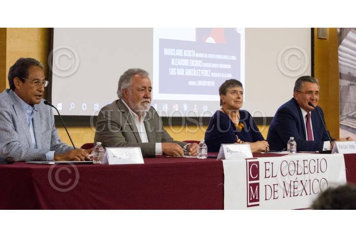 CIUDAD DE MÉXICO, 30JULIO2019.- Alejandro Encinas, Mariclaire Acosta, Luis Raul González y moderando Sergio Aguayo; en el debate Derechos Humanos en la 4T que se realiza en El Colegio de México. FOTO: VICTORIA VALTIERRA /CUARTOSCURO.COM