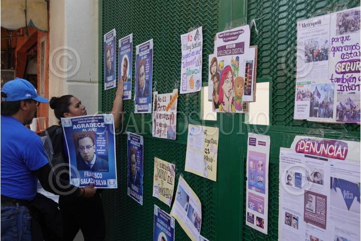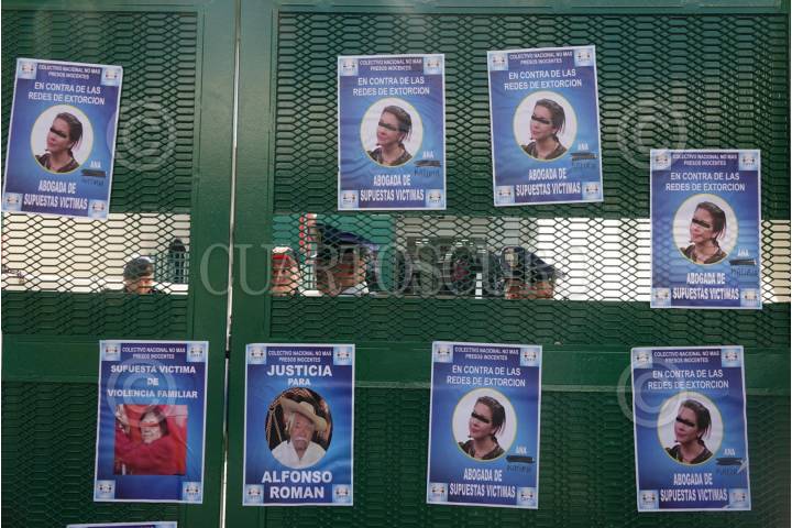 CIUDAD DE MÉXICO, 09DICIEMBRE2024.- Integrantes del Colectivo Nacional "No más Presos Inocentes" colocaron carteles en contra de la abogada Ana Katiria junto con carteles de apoyo a las alumnas del Instituto Politécnico Nacional, víctimas de violencia digital por parte de Diego N, durante la Primera Audiencia de apelación en los Juzgados Penales de la CDMX, la cual no se realizó debido a que el acusado no llevó la copia de sus documentos y se pospuso hasta el 29 de enero. El pasado 4 de diciembre Diego N fue absuelto de haber manipulado fotografías de sus compañeras a través de Inteligencia Artificial y comercializado con fines de explotación sexual. FOTO: GRACIELA LÓPEZ/CUARTOSCURO.COM