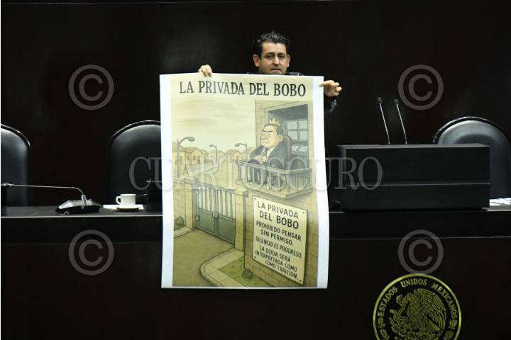 CIUDAD DE MÉXICO, 01JULIO2025.- Hugo Manuel Luna Vázquez, diputado de Movimiento Ciudadano, durante su participación mostró una imagen generada con inteligencia artificial luego de solicitarle mostrar una fábula respecto a la ley federal de Telecomunicaciones y Radiodifusión, la cual fue aprobada en lo general durante la sesión extraordinaria de la Cámara de Diputados. FOTO: MARIO JASSO/CUARTOSCURO.COM