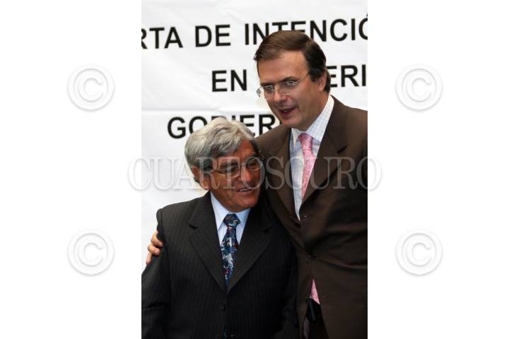 MÉXICO D.F. 11FEBRERO2008.-Marcelo Ebrad jefe de gobierno capitalino realizó la Firma de la Carta Intención para el Intercambio de Información y Colaboración en materia de Desarrollo Social con la Embajada de Bolivia.En la imege es acompañado por Jorge Mansilla Torres Embajador de Bolivia en México. FOTO: GUILLERMO PEREA/CUARTOSCURO.COM