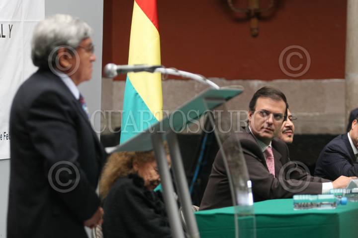 MÉXICO D.F. 11FEBRERO2008.-Marcelo Ebrad jefe de gobierno capitalino realizó la Firma de la Carta Intención para el Intercambio de Información y Colaboración en materia de Desarrollo Social con la Embajada de Bolivia. FOTO: GUILLERMO PEREA/CUARTOSCURO.COM