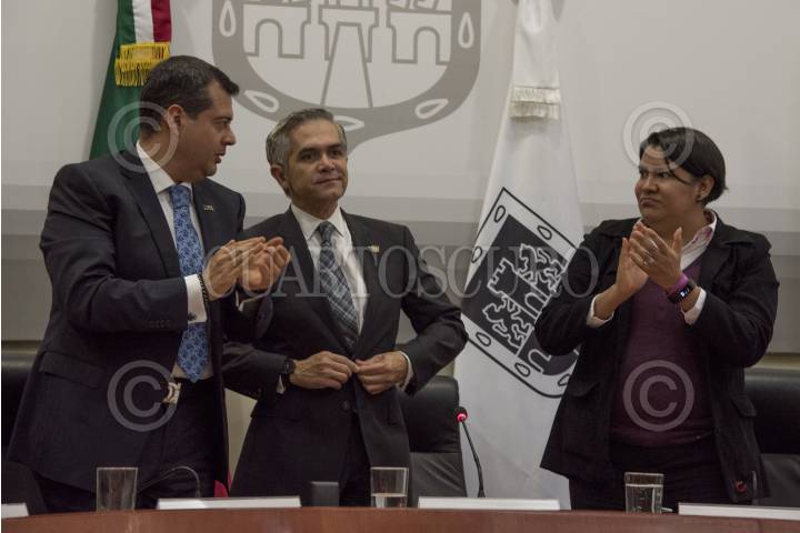 CIUDAD DE MÉXICO, 10MARZO2017.- José Ramón Amieva Gálvez, Secretario de Desarrollo Social, Miguel Ángel Mancera Espinosa, Jefe de Gobierno, y Perla Gómez, secretaria de la Comisión de Derechos Humanos de la CDMX encabezaron la Firma de la Carta de Intención por los Derechos Humanos en Materia de Personas Migrantes Repatriadas. FOTO: TERCERO DÍAZ /CUARTOSCURO.COM