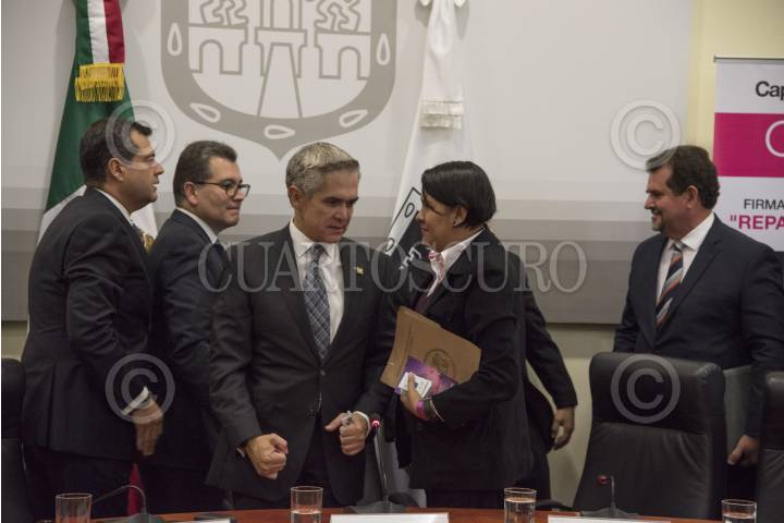 CIUDAD DE MÉXICO, 10MARZO2017.- Miguel Ángel Mancera Espinosa, Jefe de Gobierno, y José Ramón Amieva Gálvez, Secretario de Desarrollo Social, encabezaron la Firma de la Carta de Intención con la Comisión de Derechos Humanos de la CDMX y la Asociación Migrantes Michoacanos por los Derechos Humanos en Materia de Personas Migrantes Repatriadas. FOTO: TERCERO DÍAZ /CUARTOSCURO.COM