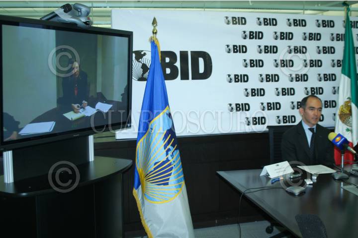 MÉXICO, D.F., 17DICIEMBRE2008.- En día de hoy se realizó una video conferencia con Amanda Gassman, especialista Senior en Desarrollo Social del Banco Interamericano de Desarrollo quien hablo desde Washington y con Juan Carlos De la Hoz, Jefe de Operaciones y representante en México, en el lugar se anuncio que el Banco Interamericano de Desarrollo aprobó una linea de credito por 2 millones de dolares a México para el combate a la pobreza del país. FOTO: ENRIQUE ORDÓÑEZ/CUARTOSCURO.COM