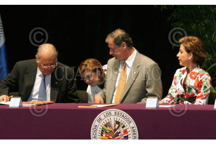 México, D.F., 23AGOSTO2004.- Enrique Iglesias, presidente del Banco Interamericano de Desarrollo y Cesar Gavirira, secretario general de la Organización de Estados Americanos, fueron invitados a la sesión inaugural de la Segunda Reunión Interamericana de Ministros y Máximas Autoridades de la Cultura, realizada en el Centro Nacional de las Artes. FOTO: Moisés Pablo/CUARTOSCURO.COM