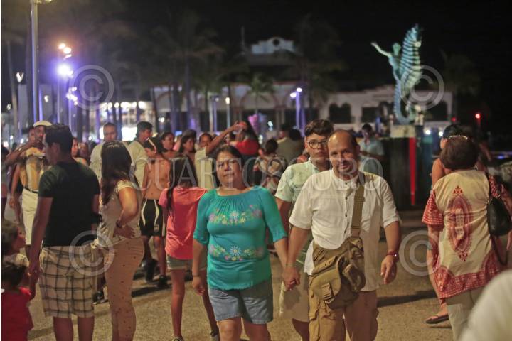 PUERTO VALLARTA, JALISCO, 04AGOSTO2018.- Cientos de turistas nacionales e internacionales disfrutan del malecón de Puerto Vallarta en las últimas dos semanas del periodo vacacional. FOTO: FERNANDO CARRANZA GARCIA / CUARTOSCURO.COM