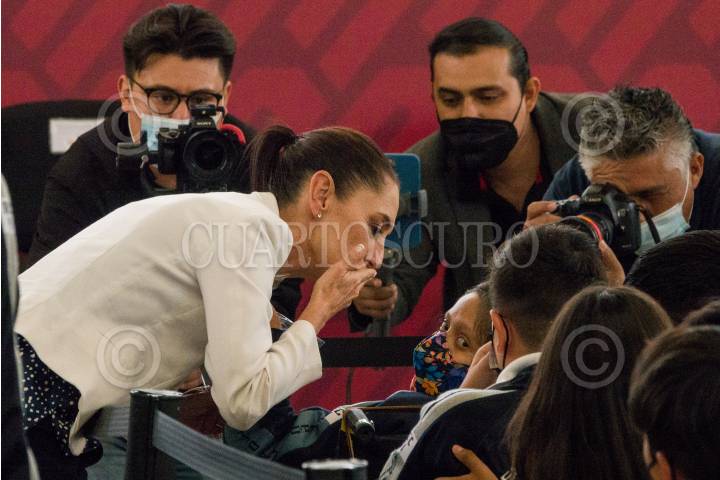 Claudia Sheinbaum durante su llegada a la instalación de un punto WiFi en la Secundaria Diurna No.91 en la alcaldía Magdalena Contreras