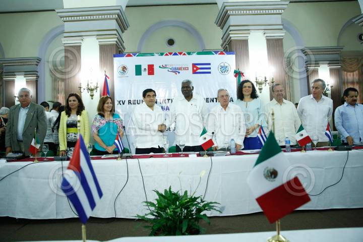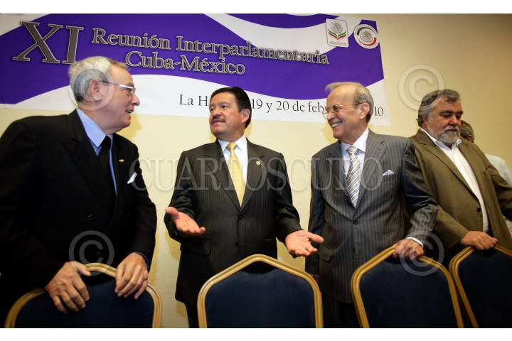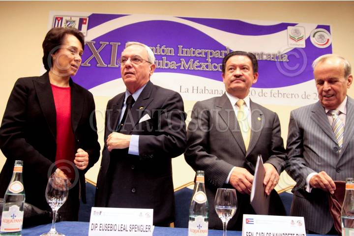 HABANA, CUBA, 19FEBRERO2010.- María de los Ángeles Moreno, Senadora del PRI, Eusebio Leal Spengler, diputado presidente del grupo parlamentario de Amistad Cuba, Carlos Navarrete, presidente del Senado de la República, Ricardo Alarcón Quezada, presidente de la Asamblea Nacional del Poder Popular de Cuba, y Alejandro Encinas, diputado del PRD, durante la inauguración de la XI Reunión Interparlamentaria Cuba-México. FOTO: CUARTOSCURO.COM