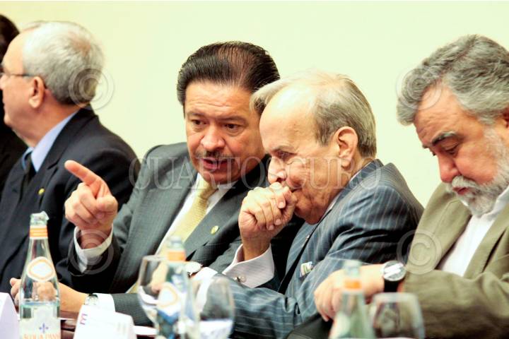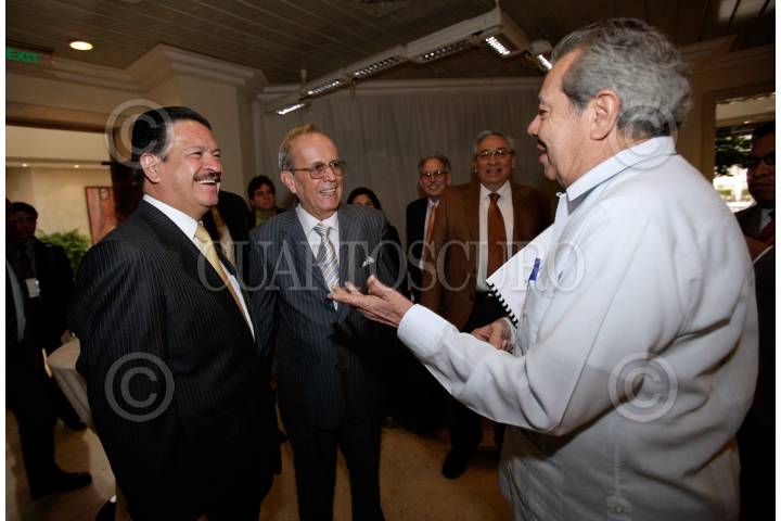HABANA, CUBA, 19FEBRERO2010.- Eusebio Leal Spengler, diputado presidente del grupo parlamentario de Amistad Cuba, Carlos Navarrete, presidente del Senado de la República, Ricardo Alarcón Quezada, presidente de la Asamblea Nacional del Poder Popular de Cuba, y Alejandro Encinas, diputado del PRD, durante la inauguración de la XI Reunión Interparlamentaria Cuba-México. FOTO: CUARTOSCURO.COM