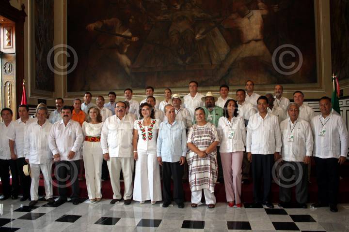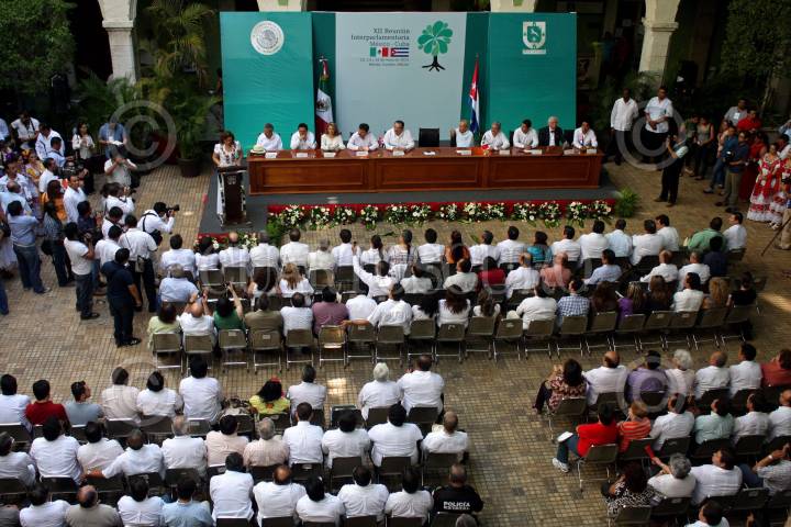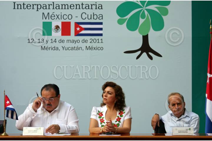 MÉRIDA, YUCATÁN, 13MAYO2011.- Jorge Carlos Ramírez Marín, diputado federal del PRI, Yvonne Ortega, gobernadora de la entidad y Ricardo Alarcón de Quesada, presidente de la Asamblea Nacional del Poder Popular de la República de Cuba, encabezaron la XII Reunión Interparlamentaria México-Cuba. FOTO: FRANCISCO BALDERAS/CUARTOSCURO.COM