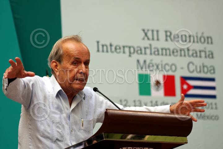 MÉRIDA, YUCATÁN, 13MAYO2011.- Ricardo Alarcón de Quesada, presidente de la Asamblea Nacional del Poder Popular de la República de Cuba, durante la XII Reunión Interparlamentaria México-Cuba. FOTO: FRANCISCO BALDERAS/CUARTOSCURO.COM