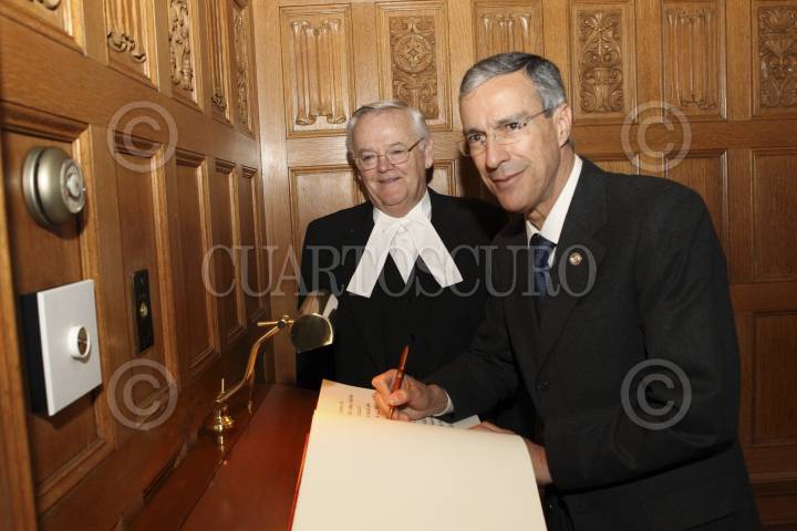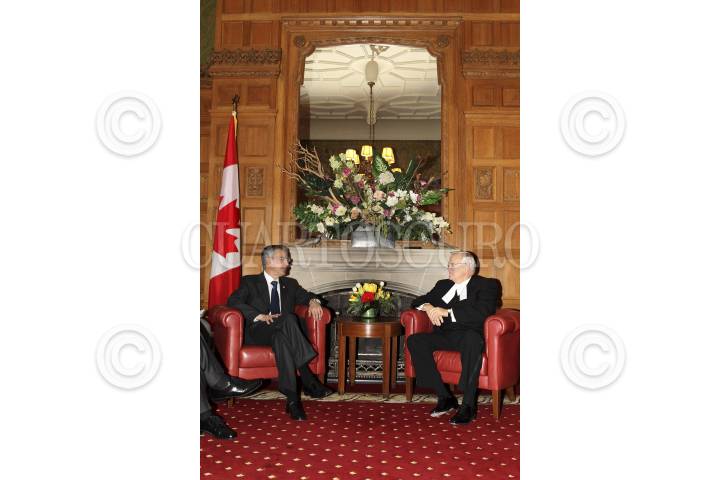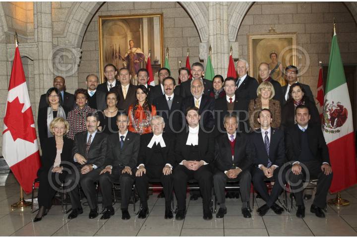 OTTAWA, CANADÁ, 22NOVIEMBRE2011.- El senador José González Morfín, presidente de la Mesa Directiva del Senado de la República, y Nöel Kinsella, presidente del Senado de Canadá, durante la clausura de la Reunión Interparlamentaria México-Canadá. FOTO: CUARTOSCURO.COM