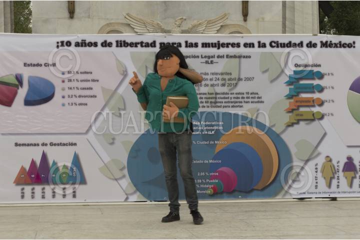 CIUDAD DE MÉXICO, 24ABRIL2017.- Mujeres integrantes de la Red por los Derechos Sexuales y Reproductivos en México presentaron el performance "10 años de libertad" frente al Hemiciclo a Juárez para celebrar una década de la Interrupción Legal del Embarazo en la ciudad. FOTO: SELENE PACHECO /CUARTOSCURO.COM