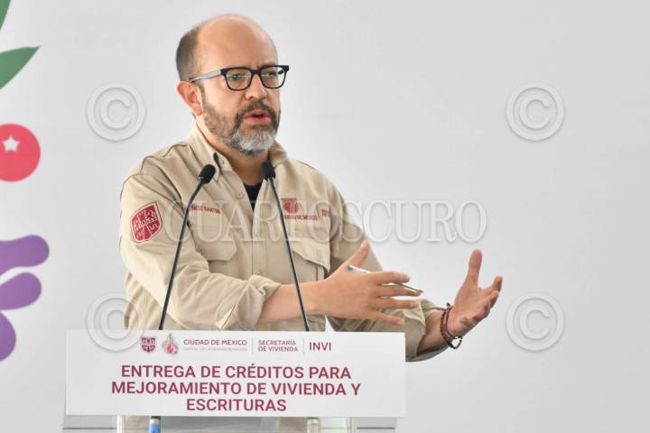 CIUDAD DE MÉXICO, 21MARZO2025.- Inti Muñoz Santini, titular de la Secretaría de Desarrollo Urbano y Vivienda, durante su intervención en la entrega de créditos para mejoramiento de vivienda y escrituras, evento realizado en la explanada del Monumento a la Revolución. FOTO: MARIO JASSO/CUARTOSCURO.COM