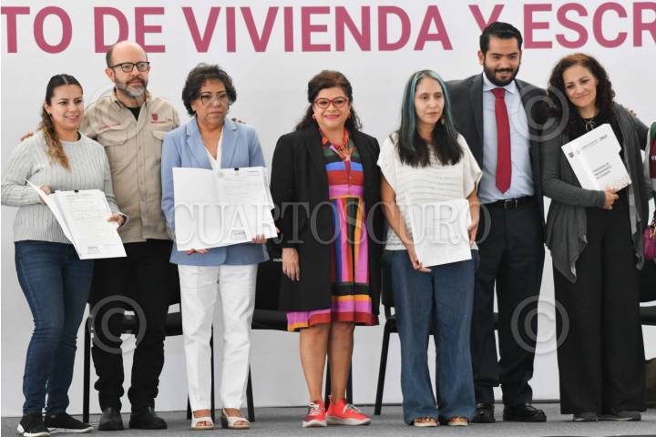 CIUDAD DE MÉXICO, 21MARZO2025.- Clara Brugada, jefa de Gobierno, encabezó la entrega de créditos para mejoramiento de vivienda y escrituras, evento realizado en la explanada del Monumento a la Revolución. La acompañan: Inti Muñoz Santini, titular de la Secretaría de Desarrollo Urbano y Vivienda, y César Emilio Guijosa, diputado local y presidente de la Comisión de Vivienda del Congreso capitalino. FOTO: MARIO JASSO/CUARTOSCURO.COM