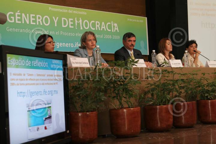 MÉXICO, D.F., 24JUNIO2009.- Leonardo Valdés Zurita, presidente del Consejo General del Instituto Federal Electoral, encabezó la presentación del micrositio Género y Democracia que tiene como finalidad informar sobre las acciones que en materia de equidad y género llevan a cabo los partidos políticos. FOTO: CUARTOSCURO.COM