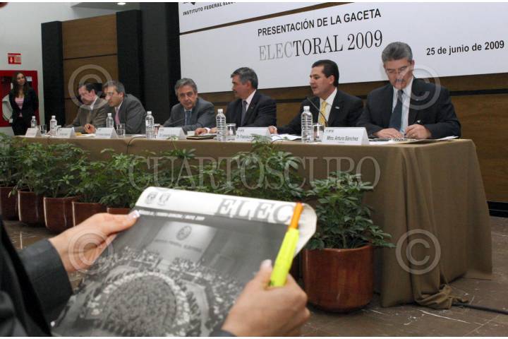 MÉXICO, D.F., 25 JUNIO2009.- Consejeros del Instituto Federal Electoral, encabezados por el presidente del Consejo General, Leonardo Valdés Zurita, participaron en la presentación de la Gaceta Electoral 2009, publicada por la Facultad de Ciencias Políticas y Sociales de la Universidad Nacional Autónoma de México. FOTO: CUARTOSCURO.COM