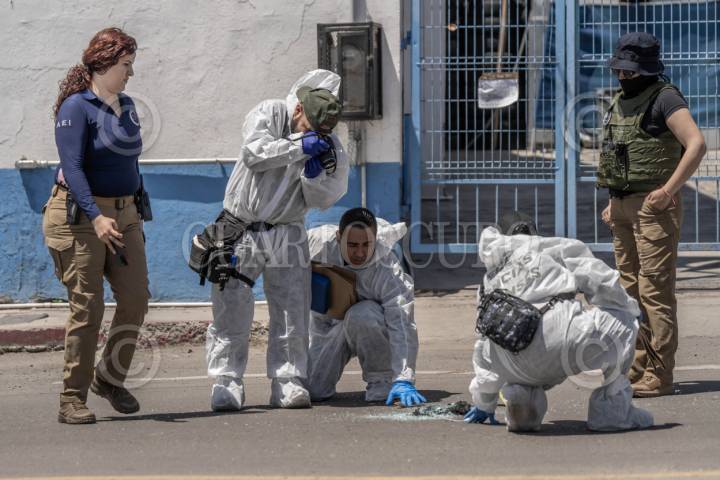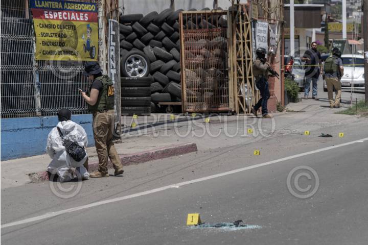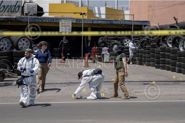 ROSARITO, BAJA CALIFORNIA, 19MAYO2025.- ROSARITO, BAJA CALIFORNIA, 19MAYO2025.- Dos agentes de la Fiscalía General del Estado (FGE)resultaron heridos tras un ataque armado ocurrido la tarde del lunes. El hecho tuvo lugar en la llantera y mofles Arredondo Il, ubicada sobre la calle Artículo 27 Constitucional, cerca del Palacio Municipal de Playas de Rosarito. Fuentes cercanas a la investigación señalaron que uno de los lesionados es el jefe de la Unidad de Homicidios de la FGE en ese municipio FOTO: OMAR MARTÍNEZ/CUARTOSCURO.COM