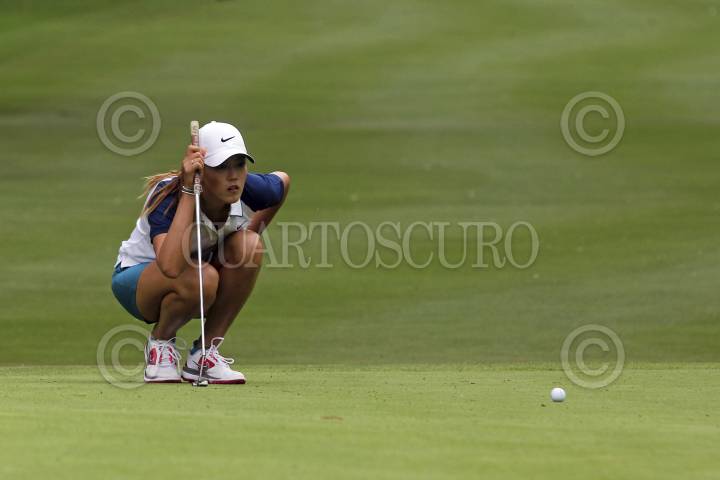 GUADALAJARA, JALISCO, 14NOVIEMBRE2013.- La Golfista Estadounidense Michelle Wie, durante su participación en el primer día de actividades de la 6ta edición del Torneo “Lorena Ochoa Invitational” del Tour de la LPGA, que se lleva a cabo en las instalaciones del Guadalajara Country Club de esta ciudad, del 14 al 17 de Noviembre. FOTO: FERNANDO CARRANZA /CUARTOSCURO.COM