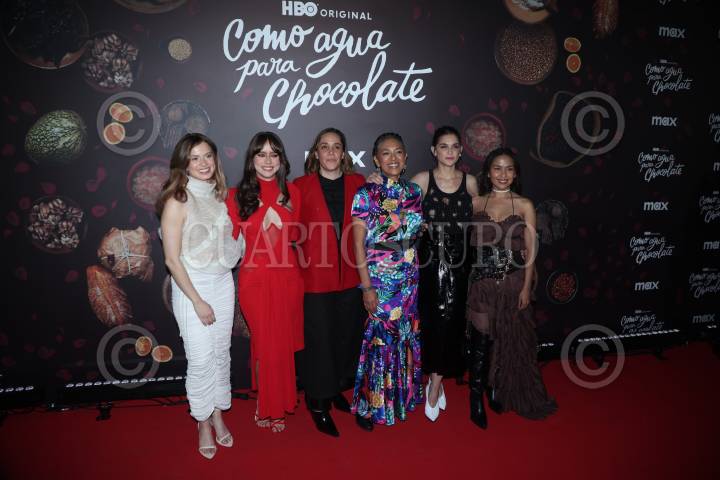 CIUDAD DE MÉXICO, 29OCTUBRE2024. Ana Valeria Becerril, Azul Guaita, Ana Lorena Pérez Ríos, Ángeles Cruz, Irene Azuela y Gabriela Cartol a su paso por la alfombra roja por el estreno de la serie y nueva adaptación de la novela “Como agua para chocolate” por parte de HBO, en un centro comercial al poniente de la ciudad. FOTO: EDGAR NEGRETE LIRA/CUARTOSCURO.COM