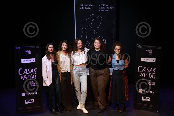 CIUDAD DE MÉXICO, 11FEBRERO2025. Irene Azuela, Paula Watson, Mariana Giménez, Mariana Villegaz y Berenice González durante la conferencia de prensa de la puesta en escena “Casas Vacías” una obra que llega para recorrer los rincones de la maternidad. Basada en la novela homónima de Brenda Navarro, esta historia llegará al escenario del Foro Shakespeare. FOTO: EDGAR NEGRETE LIRA/CUARTOSCURO.COM