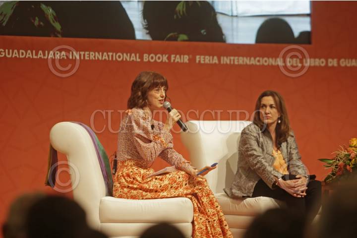 Irene Vallejo y Alberto Manguel, durante su participación en la edición 36 de la Feria Internacional del Libro de Guadalajara (FIL), en donde el país invitado de honor es Sharjah.