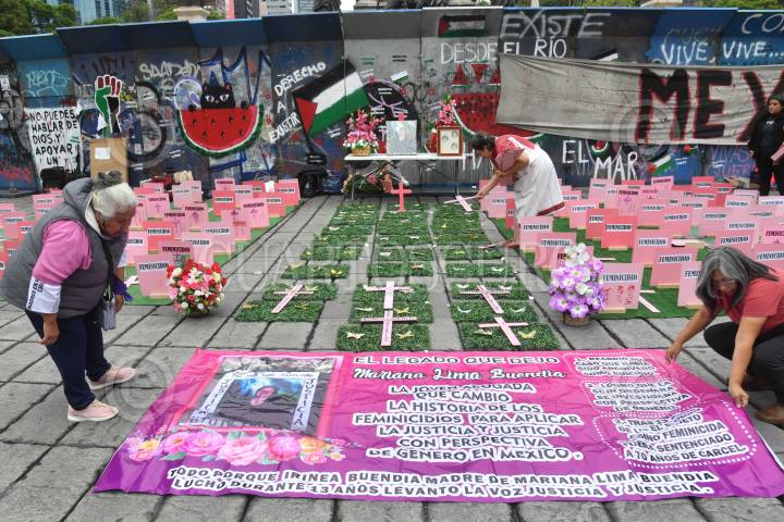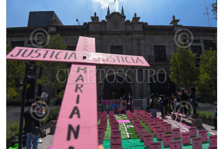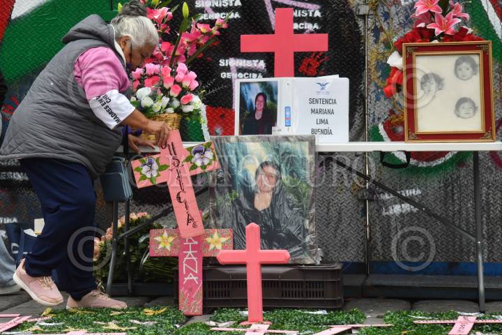 TOLUCA, ESTADO DE MÉXICO, 25 JUNIO 2025.- Irinea Buendía instaló una ofrenda y realizó un homenaje frente a la Cámara de Diputados del Estado de México a 15 años del feminicidio de su hija Mariana Lima Buendía, en donde entregó una iniciativa de reforma de la Ley de Acceso de las Mujeres a una Vida Libre de Violencia y el Código Penal del Estado de México. FOTO: CRISANTA ESPINOSA AGUILAR /CUARTOSCURO.COM