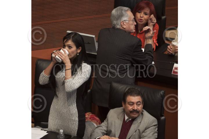 MÉXICO, D.F., 11DICIEMBRE2012.- La senadora Iris Vianey Mendoza, durante la sesión en la que se aprobó la Ley de Administración Pública promovida por el Jefe del Ejecutivo Enrique Peña Nieto. En la imagen se observa a Manuel Barttlet, Layda Sansores e Isidro Pedraza. FOTO: MOISÉS PABLO /CUARTOSCURO.COM