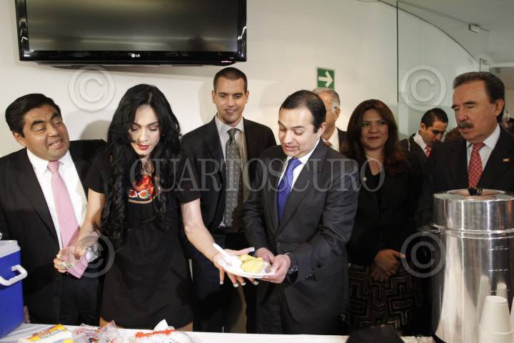 MÉXICO, D.F., 14FEBRERO2013.- Los senadores Miguel Barbosa, PRD, Iris Vianey Mendoza, PRD, Jorge Emilio González Martinez, PVEM, Ernesto Cordero, PAN, y Emilio Gamboa, PRI, compartieron la tamaliza con los reportero de la fuente del Senado en la sala de prensa. FOTO: MOISÉS PABLO /CUARTOSCURO.COM