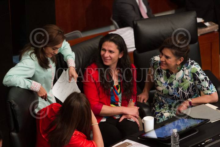 CIUDAD DE MÉXICO, 29MARZO2016.- Las senadoras Iris Vianey Mendoza, Ana Gabriela Guevara, y María Elena Barrera Tapia, durante la sesión en la Cámara de Senadores. FOTO: MOISÉS PABLO /CUARTOSCURO.COM