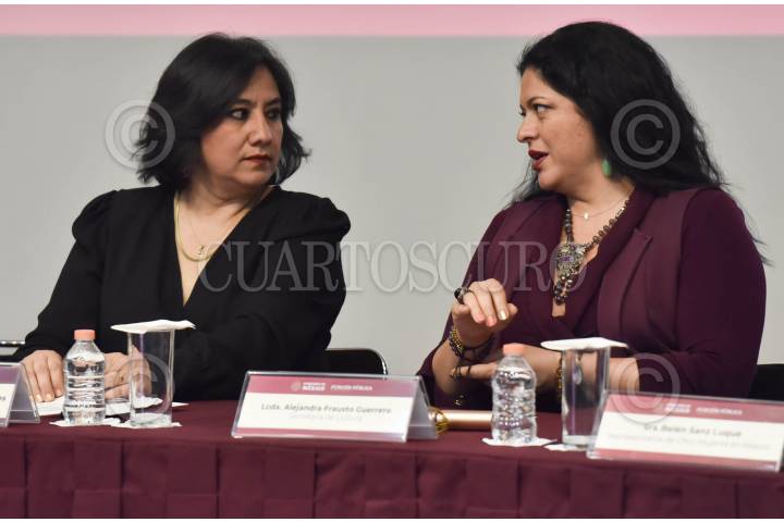 Irma Eréndira Sandoval, secretaria de la Función Pública, y Alejandra Frausto, secretaria de Cultura, durante la presentación de la Convocatoria “Un Gobierno con paridad. Primer Concurso de Ingreso a la Administración Pública Federal exclusivo para Mujeres”.
