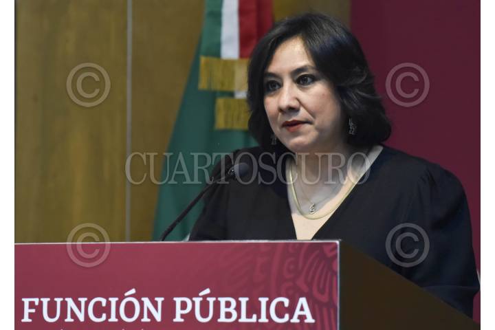 Irma Eréndira Sandoval, secretaria de la Función Pública, durante la presentación de la Convocatoria “Un Gobierno con paridad. Primer Concurso de Ingreso a la Administración Pública Federal exclusivo para Mujeres”.