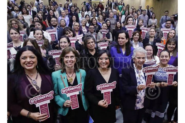María Luisa Albores, secretaria de Bienestar, Olga Sánchez Cordero, secretaria de Gobierno, Irma Eréndira Sandoval, secretaria de la Función Pública, y Alejandra Frausto, secretaria de Cultura, durante la presentación de la Convocatoria “Un Gobierno con paridad. Primer Concurso de Ingreso a la Administración Pública Federal exclusivo para Mujeres”.