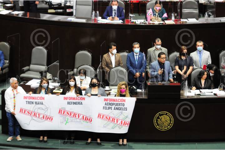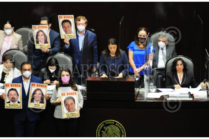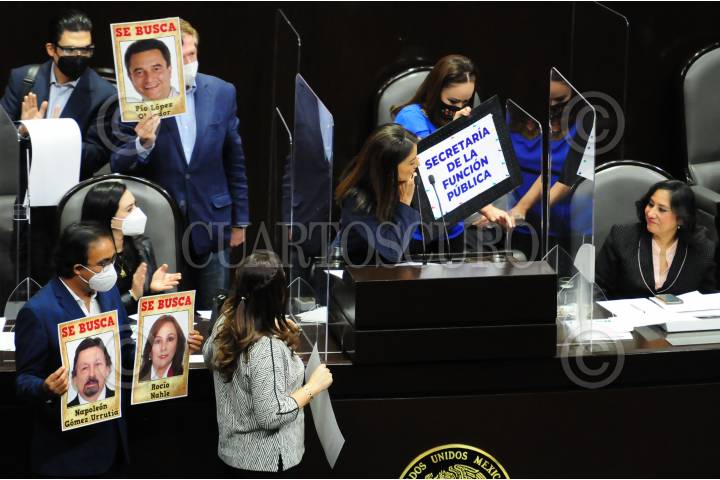 Diputados de Movimiento Ciudadano, protestan en la comparecencia de la titular de la SFP, Irma Eréndira Sandoval.