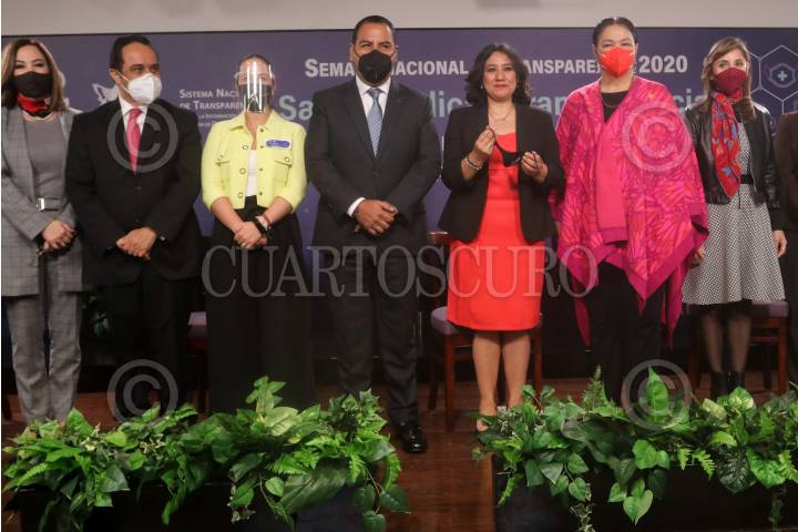Blanca Lilia Ibarra, comisionada del INAI; Irma Eréndira Sandoval, secretaria de la Función Pública; Eduardo Ramírez, presidente de la mesa directiva en el Senado; Francisco Javier Aguirre, presidente comisionado del INAI, y Dulce María Sauri, presidenta de la mesa directiva en la Cámara de Diputados, encabezaron la Inauguración de la Semana Nacional de la Transparencia 2020