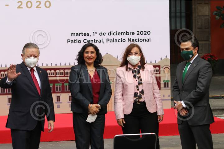 Arturo Zaldívar Lelo de Larrea, presidente de la SCJN; Irma Eréndira Sandoval, titular de la SFP; Rocío Nahle, secretaria de Energía, y Zoé Robledo Aburto, director del IMSS, durante el Segundo Informe del Presidente de México, Andrés Manuel López Obrador.
