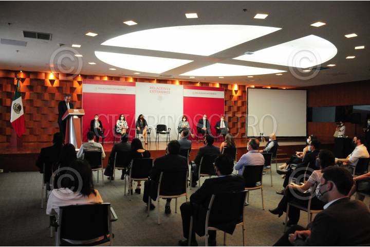 Marcelo Ebrard, canciller mexicano e Irma Eréndira Sandoval, encabezaron la presentación del proyecto.