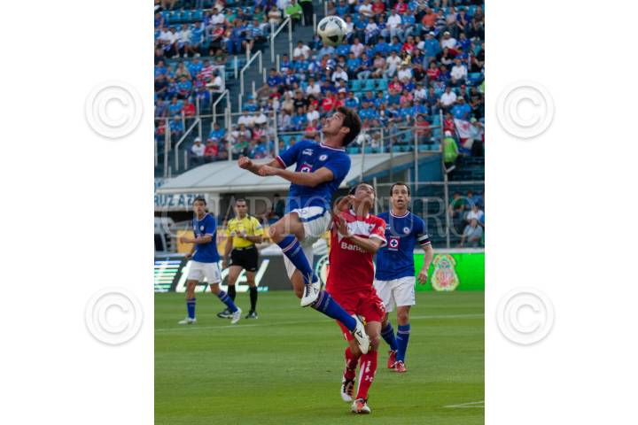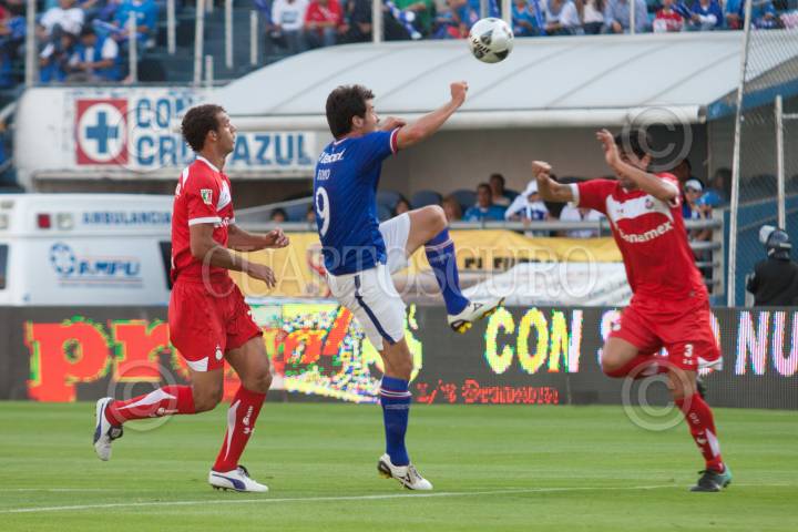 MÉXICO, D.F., 19MARZO2011.- Isaac Romo, delantero del Cruz Azul, disputa un balón en los aires en el partido entre los "cementeros" y el Toluca, la escuadra azul ganó 1-0. FOTO: MOISÉS PABLO/CUARTOSCURO.COM