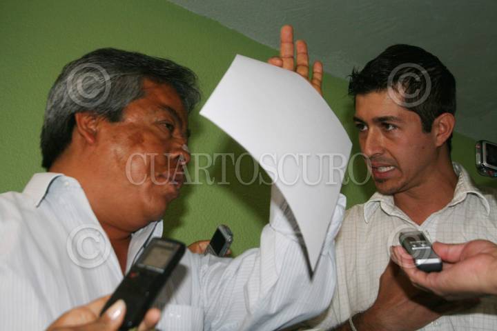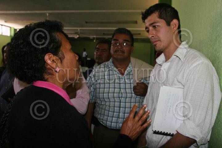 OAXACA, OAXACA, 23NOVIEMBRE2011.- Porfirio Donínguez Muñozcano, dirigente del Comité de Familiares de los Desaparecidos, Asesinados y Presos Políticos de Oaxaca (COFADPPO) rompió relaciones con Isaac Torres Carmona reprensentante en Oaxaca de la Liga Mexicana por la Defensa de los Derechos Humanos (LIMEDDH), lo anterior por los cerca de once millones de pesos destinados por el gobierno estatal para las víctimas del 2006. Dicho recurso se entregó a 44 personas, faltando 20 más, tocándoles a cada uno 170 mil pesos, sin embargo la indemnización únicamente se entregó a los representados por la LIMEDDH. Dimes y diretes se dieron al interior del auditorio de la Sección 22, donde los dirigentes y sus representados se acusaban mutuamente de buscar quedarse con el dinero. FOTO: ARTURO PÉREZ ALFONSO/CUARTOSCURO.COM