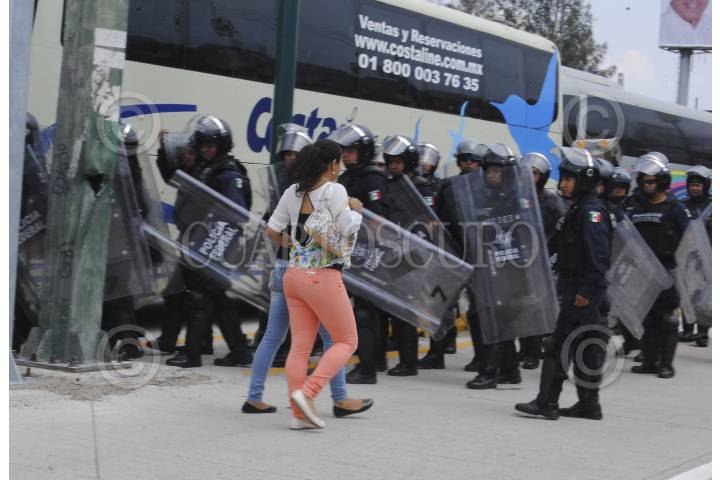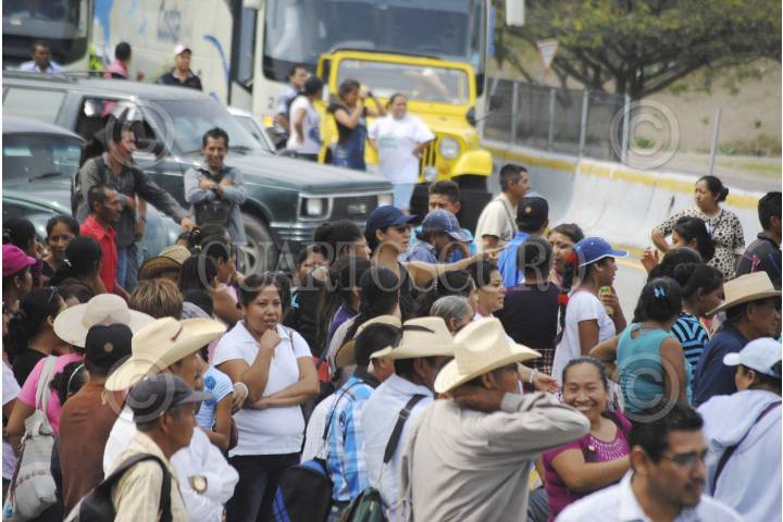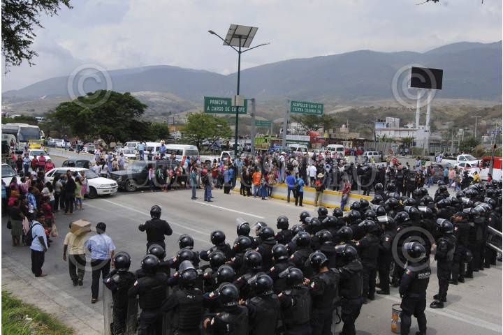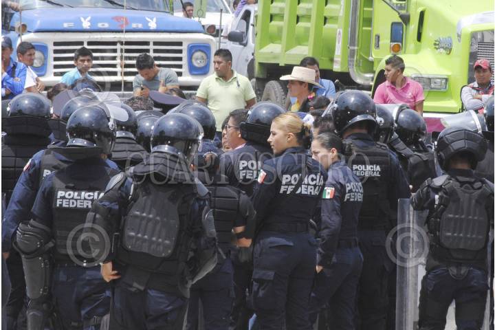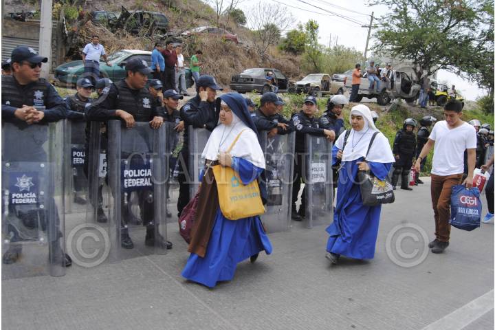 CHILPANCINGO, GUERRERO, 19MAYO2015.- Comisarios y habitantes de diferentes comunidades que conformaron la Organización de Colonias y Comunidades de Chilpancingo, marcharon de la colonia la Cinca con dirección al norte de la ciudad llegaron al Parador del Márquez donde bloquearon por espacio de dos horas la autopista del sol y la carretera libre, para exigir a Sedatu el cumplimiento de acuerdos firmados en una minuta de hace cinco meses, policías federales dialogaron con los manifestantes para retirar el bloqueo. FOTO: JOSÉ I. HERNÁNDEZ /CUARTOSCURO.COM