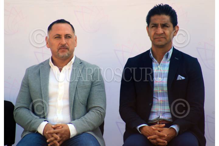 CUERNAVACA, MORELOS, 02ABRIL2019.- Los ex futbolistas Germán Villa e Isaac Terrazas durante un evento del Gobierno de Morelos. El gobernador Cuauhtémoc Blanco Bravo los integró a su gabinete. Desde octubre, Germán Villa Castañeda es director administrativo del Instituto del Deporte e Isaac Terrazas García director del Desarrollo del Deporte de la misma dependencia. FOTO: MARGARITO PÉREZ RETANA /CUARTOSCURO.COM