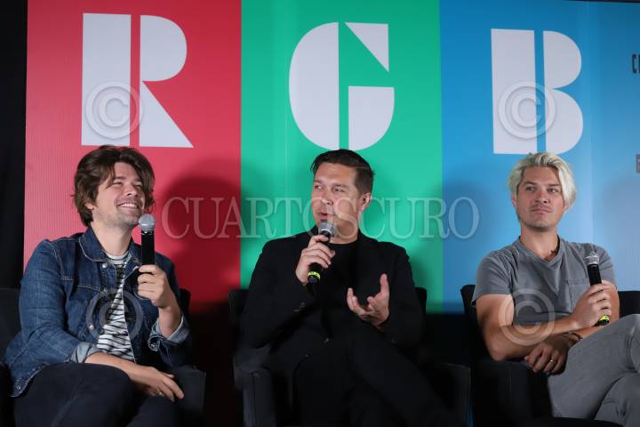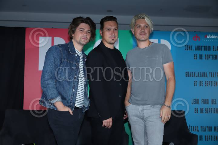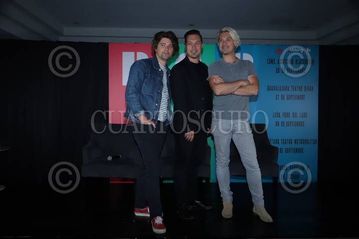 Los hermanos Zac, Isaac y Taylor durante la conferencia de prensa del grupo Hanson para presentar su nuevo material discográfico titulado RGB y su gira por la República Mexicana, Red Green Blue 2022 Tour.