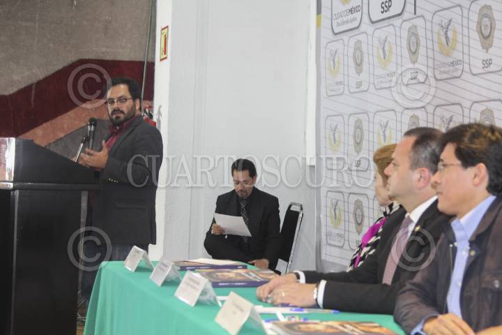 MÉXICO, D.F., 18DICIEMBRE2013.- Isaac Esquivel, fotoperiodista de la Agencia Cuartoscuro, durante la presentación del libro "Una Gran Policía para una Gran Ciudad" realizado en las instalaciones de la SSP-DF. FOTO: SAÚL LÓPEZ /CUARTOSCURO.COM