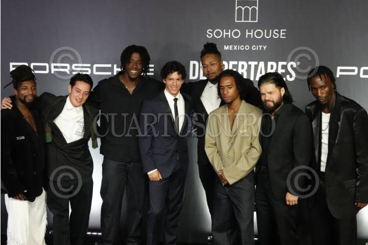 CIUDAD DE MÉXICO, 28AGOSTO2025.- El primer bailarín Isaac Hernández posa con integrantes del elenco masculino del espectáculo de danza internacional Despertares durante la alfombra roja de la misma, en las inmediaciones de Soho House en la colonia Juarez. FOTO: GALO CAÑAS/CUARTOSCURO.COM