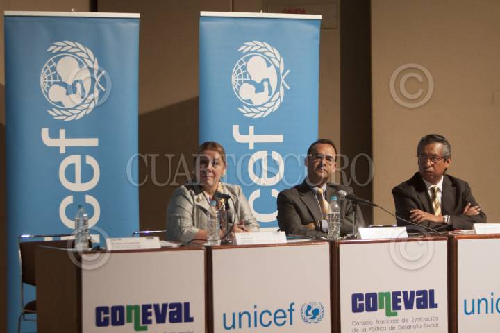 MÉXICO, D.F., 03MARZO2013.- Isabel Crowley, representante de Unicef México, Gonzalo Hernández Licona, secretario ejecutivo de Coneval, y Rodolfo de la Torre, coordinador de la oficina de investigación de la PNUD, durante la presentación del estudio "Pobreza y derechos sociales de niñas. niños y adolescentes en México, 2008-2010", en el Museo Franz Mayer. FOTO: MOISÉS PABLO /CUARTOSCURO.COM