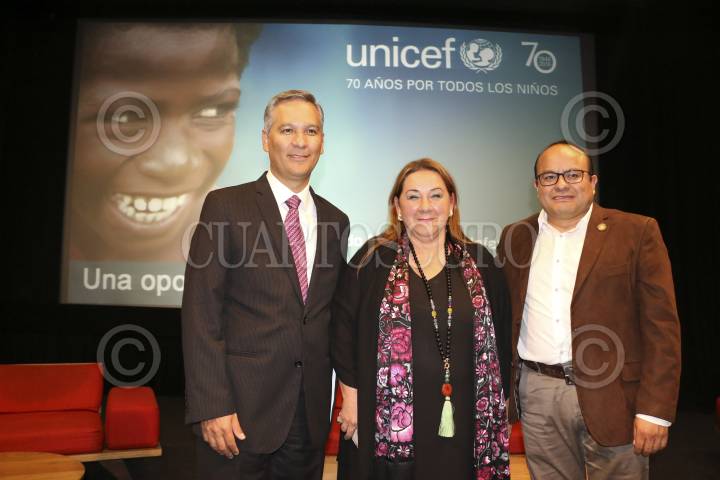 CIUDAD DE MÉXICO, 27JUNIO2016.- Isabel Crowley, representante de UNICEF México, Ricardo Bucio, secretario ejecutivo del Sistema Nacional de Protección Integral de Niñas y Niños y Adolescentes Mujica y el diputado Rafael Hernández Soriano, durante la presentación del estado mundial de la infancia Unicef realizado en el centro de cultura digital. FOTO: SAÚL LÓPEZ /CUARTOSCURO.COM