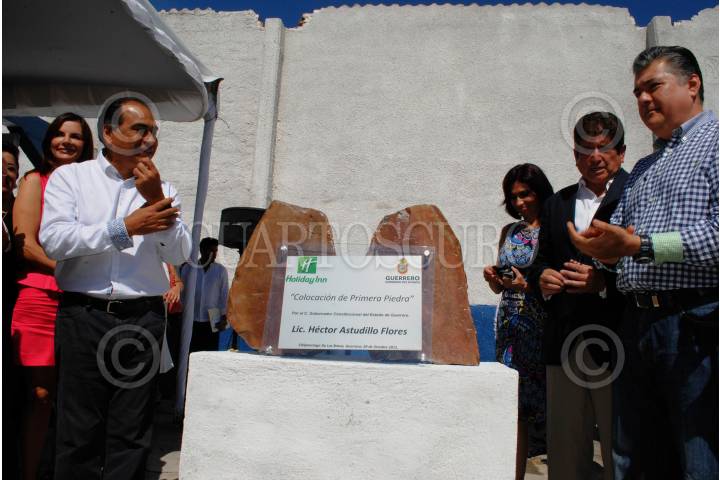 CHILPANCINGO, GUERRERO, 29OCTUBRE2015.- El gobernador Héctor Astudillo Flores presidio el evento de colocación de la primera piedra del hotel "Holiday Inn Chilpancingo" acompañado por; el presidente municipal Marco Antonio Leyva; Mena Eduardo Bahena Pineda y Víctor Carbajal; la directora de Desarrollo de Holiday Inn, Valentina Laborde Carrasco; las diputadas locales Flor Añorve Ocampo, María Luisa Vargas Mejía, Isabel Rodríguez Córdoba, el secretario de Turismo, Ernesto Rodríguez Escalona y el ex presidente municipal Mario Moreno Arcos. FOTO: JOSÉ I. HERNÁNDEZ / CUARTOSCURO.COM