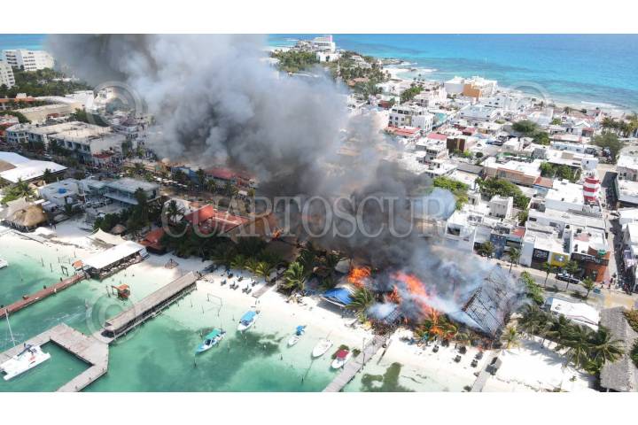Tras explosión de tanques de gas, se registro el incendio de tres papalas en Isla mujeres. Estás operaban como restaurantes con nombres La luna, Mocambo y Miramar.
