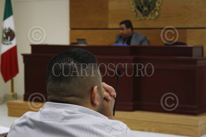 CIUDAD JUAREZ, CHIHUAHUA, 22MARZO2013.- La agente del Ministerio Público (MP), Fabiola Tafoya Quezada, solicitó al juez de Garantía Apolinar Juárez Castro que Israel Arzate Melendez sea trasladado de nueva cuenta al centro de arraigos para que cumpla ahí la medida cautelar impuesta. Santiago González Reyes, abogado defensor, argumentó que las adecuaciones a la vivienda se cumplieron y están avaladas por la Comisión Estatal de Derechos Humanos. La audiencia se llevó a cabo en la sala 2 de la Ciudad Judicial. FOTO: NACHO RUIZ /CUARTOSCURO.COM